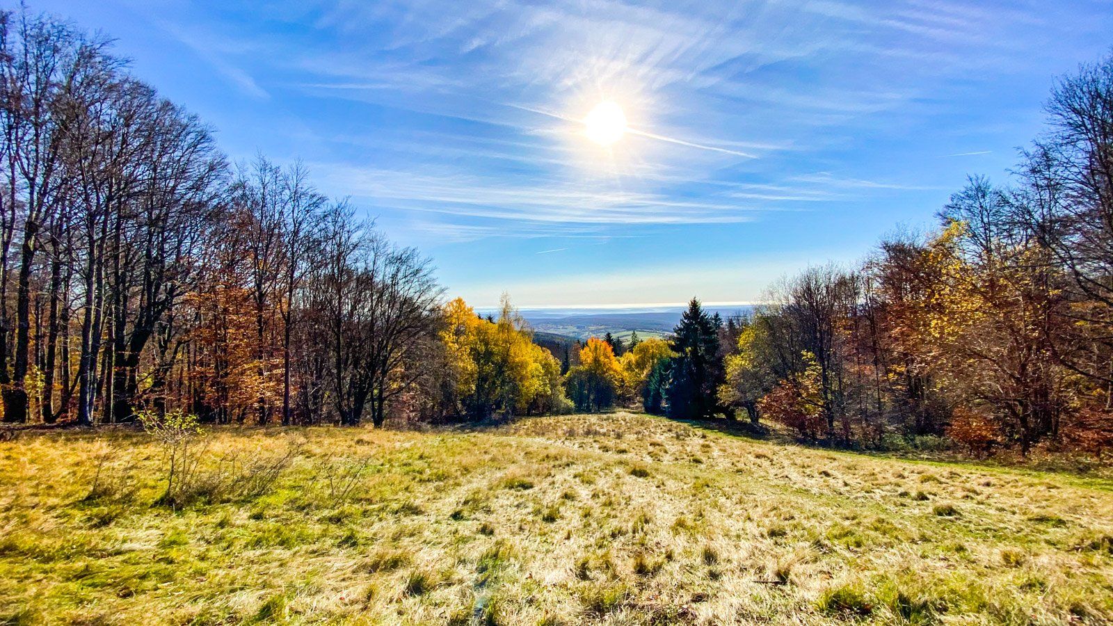 “Die Rhön verkauft sich unter Wert“, sagt mir eine Wanderin, die ich auf meinem Weg treffe und die, wie ich, ebenfalls von dem herrlichen Wetter und der malerischen Aussicht von dem kleinen Dorf Kilianshof auf den Kreuzberg schwärmt. Es ist Anfang November, bestes Wanderwetter. Goldener Herbst. Oh es gibt viele schöne Orte in Franken, wo man den fränkischen „Indian Summer“ besonders gut erleben kann. Hier auf dem Kreuzberg in der Rhön ist auf jeden Fall einer davon.